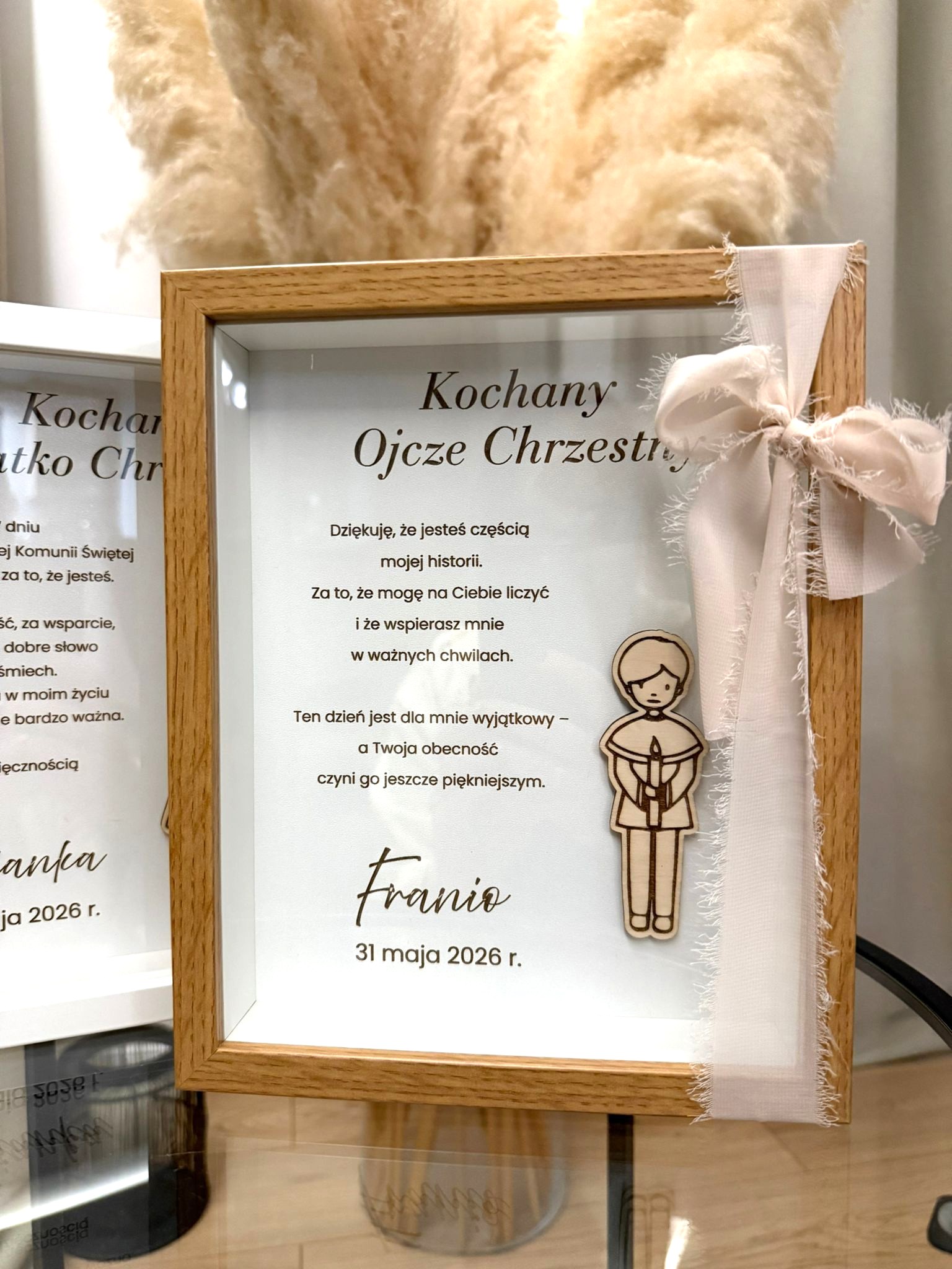 Podziękowania komunijne Dziecko z Tatą Chrzestnym