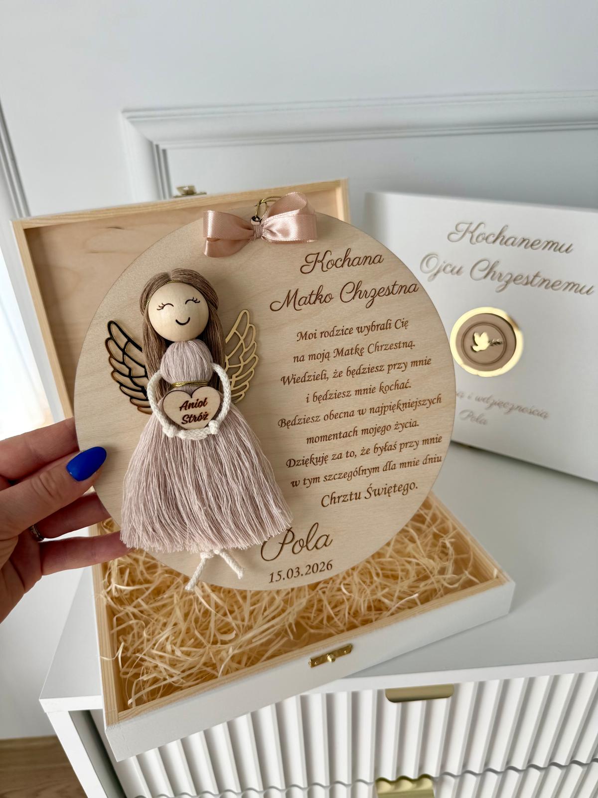 Wyjątkowe chwile zasługują na równie wyjątkowe podziękowania. Ta piękna, personalizowana pamiątka to idealny sposób, aby wyrazić wdzięczność Chrzestnym za obecność, wsparcie i miłość okazaną w ważnym dniu dziecka.