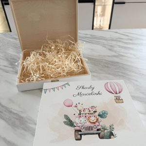 Wykonane z naturalnego drewna, ozdobione uroczą grafiką i elegancką wstążką, stanie się wyjątkową pamiątką na długie lata ✨