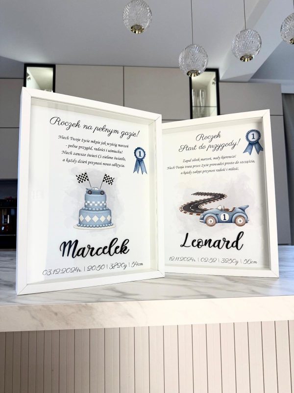 ✨ Personalizowana ramka z motywem autka oraz imieniem dziecka